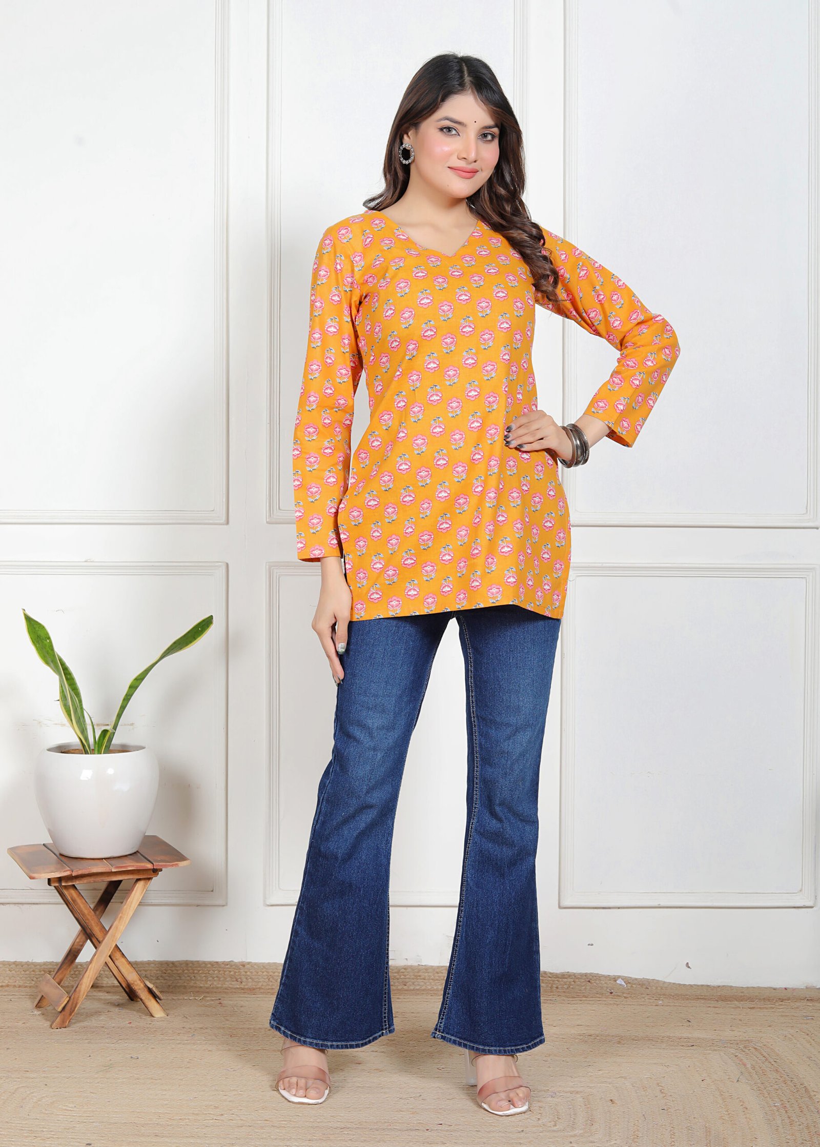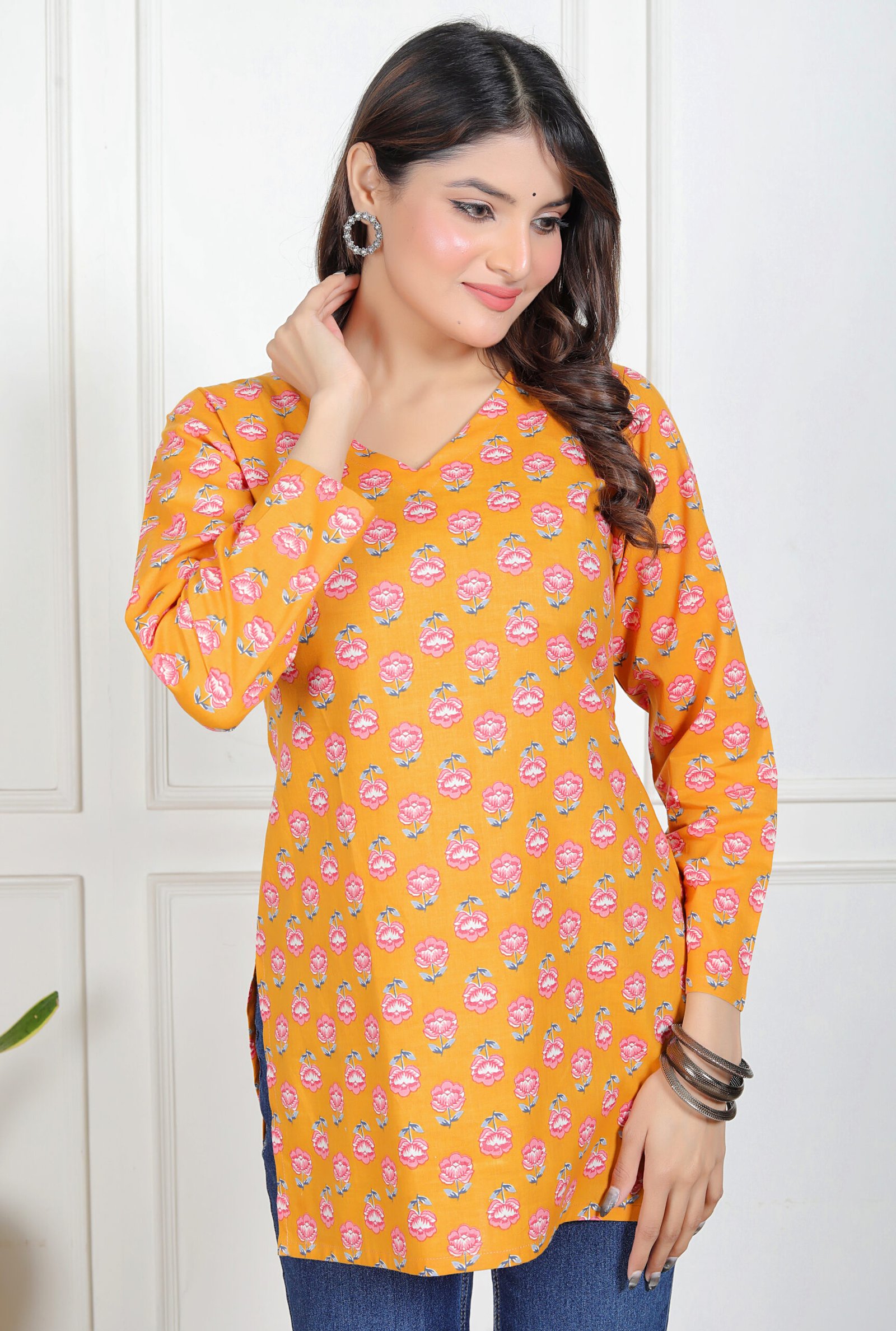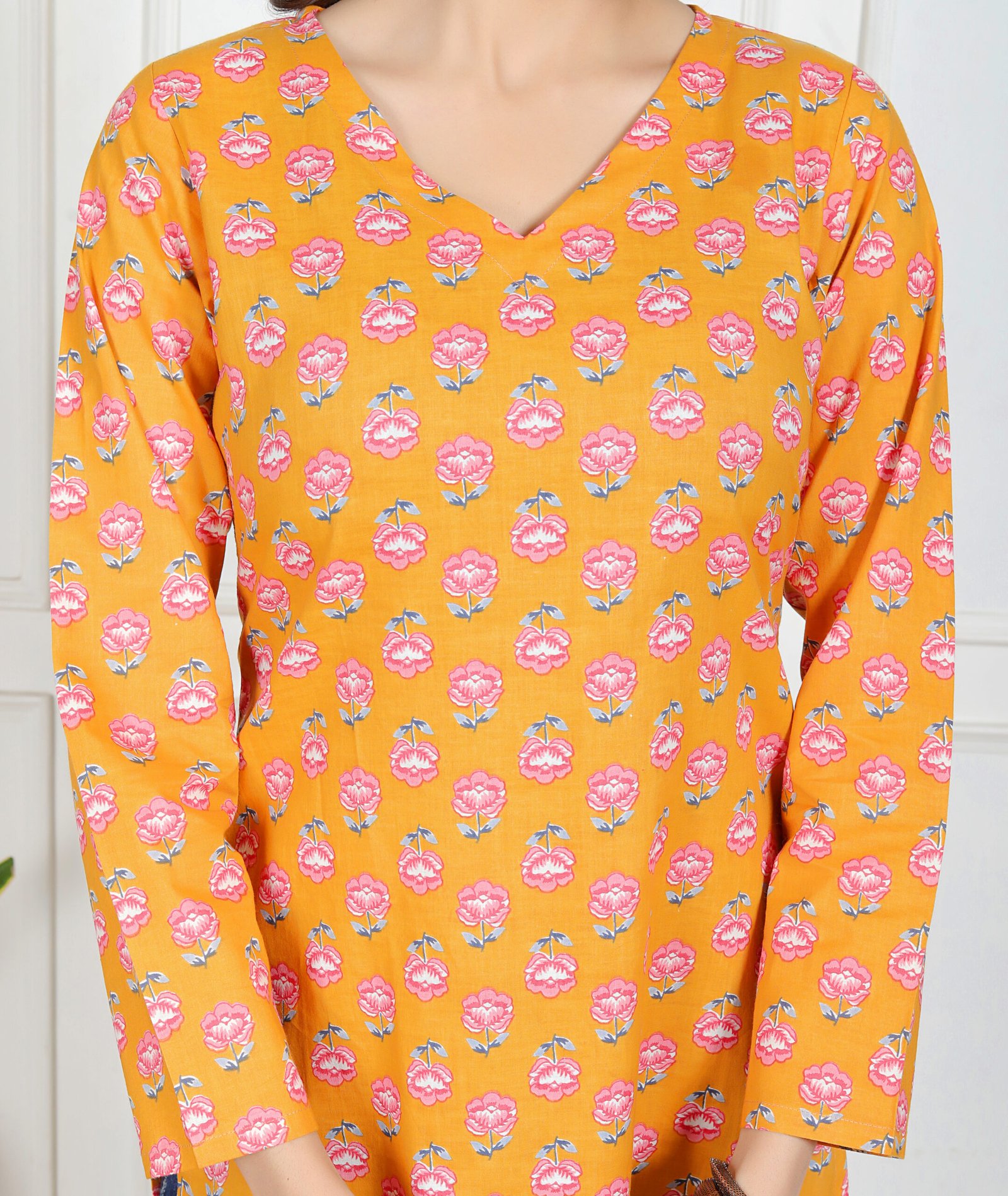 🌈 Color: Mustard Yellow with Pink Floral Buti